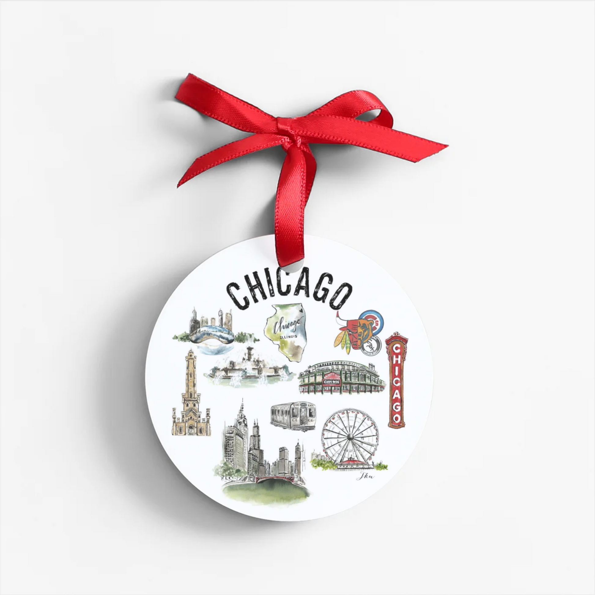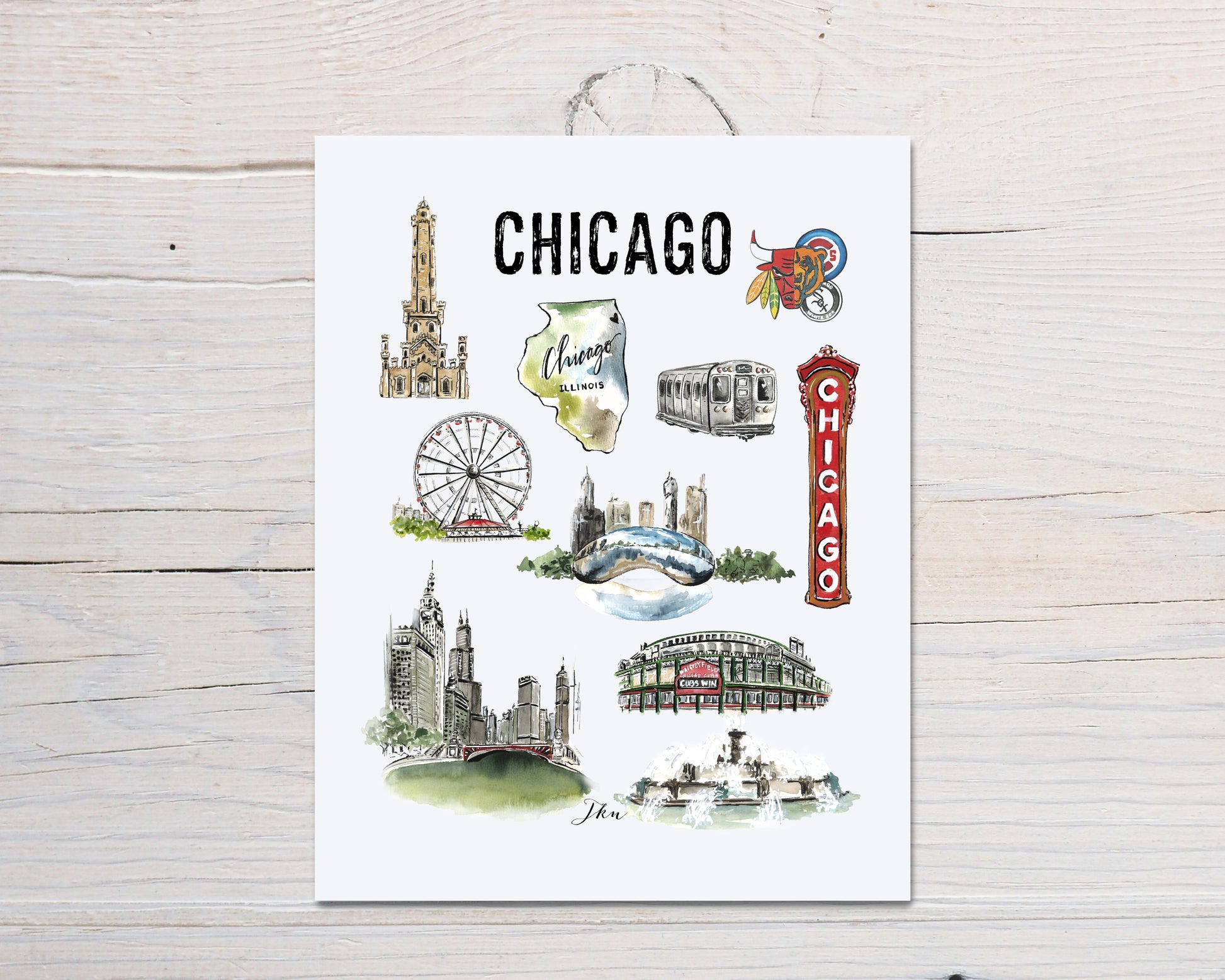 Julie painted the Iconic Chicago Images & had them printed on keepsake merchandise for everyday, holidays & gifting.